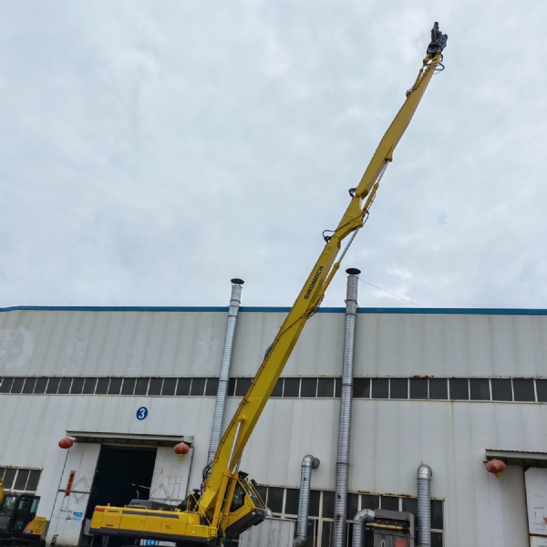 40-50噸位挖掘機(jī)加長臂,可加長到26米,其配置為:挖斗1個(gè)、鏟斗油缸1支、銷軸6支、 高壓軟管4條、黃油管3條、連桿總成1套、運(yùn)輸連桿1套、加長大臂(14米)、加長小臂(12米)。